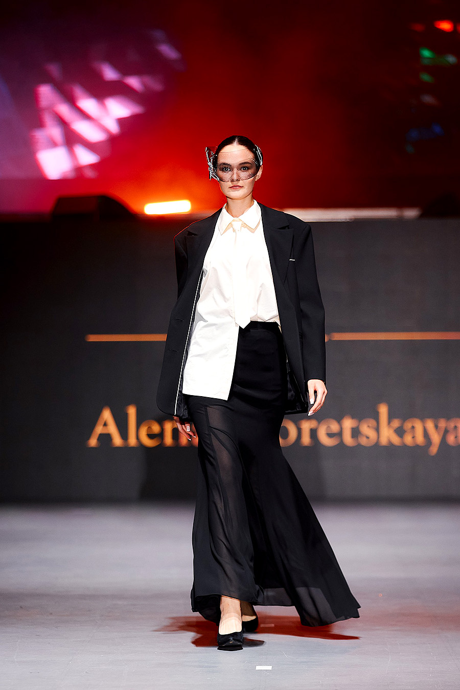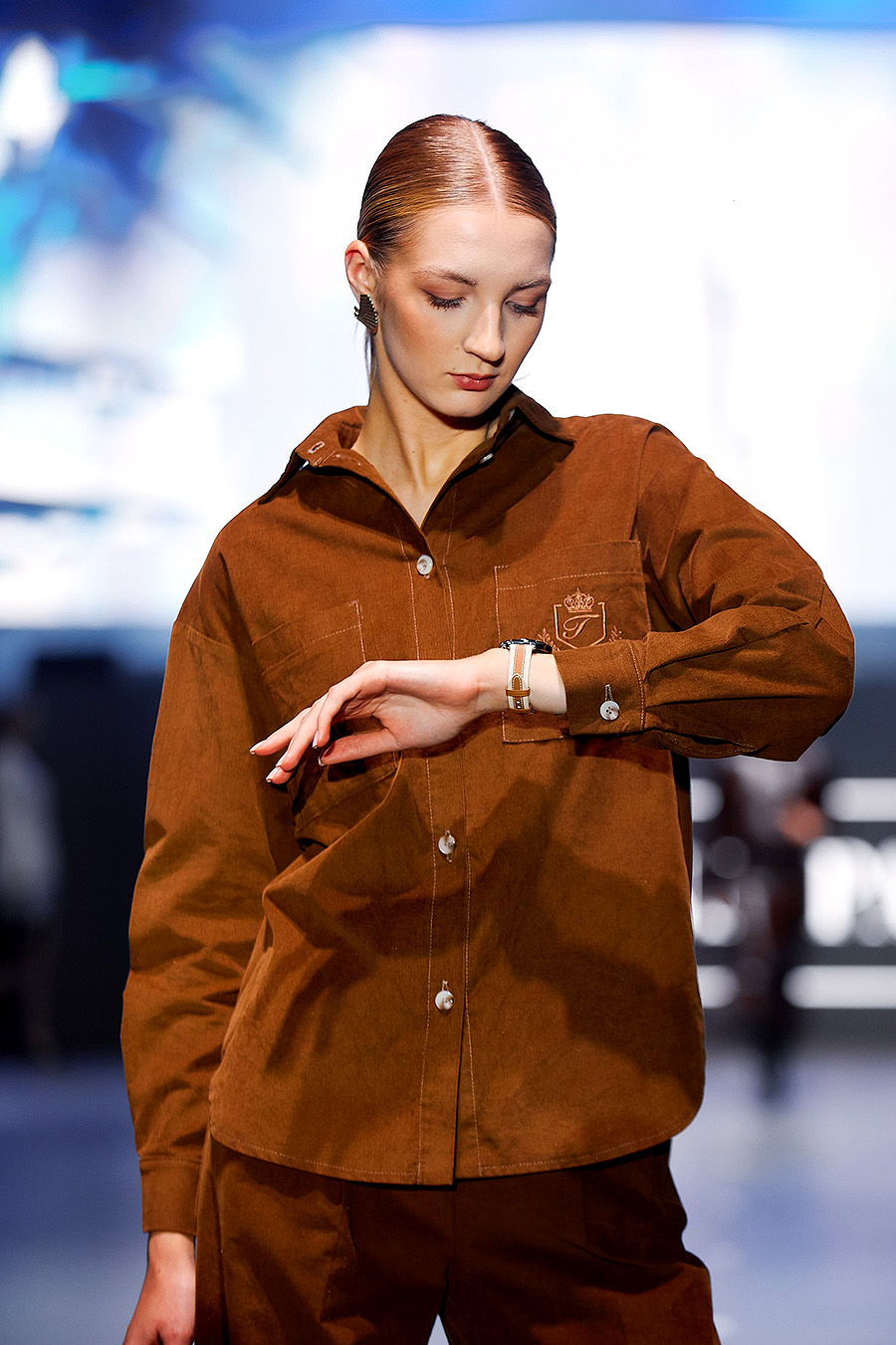 Всего на Brands Fashion Show мы увидели 11 ярких показов. Открыла шоу дизайнер Валентина Горбань со своей национальной коллекцией. Модельер является победителем Всероссийского конкурса «МОСТ» 2025 года, а ранее уже успела завоевать Гран-при конкурса «Мельница моды». Современное прочтение костюмов на белорусский лад под трек Dj «Касiў Ясь канюшiну» задало определенные настроение и тон.