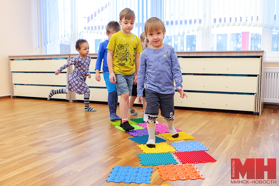 В следующей группе детки выполняют физкультминутку: топают по коврикам разной фактуры. При этом воспитатель загадывает им загадки, чтобы веселей ходилось, а за правильные ответы каждый получает яркие наклейки. И снова к фотокору с его камерой — особое внимание. «И я так хочу фотографировать», — признается Ян. Да за чем дело стало: расти, малыш, вся жизнь впереди.