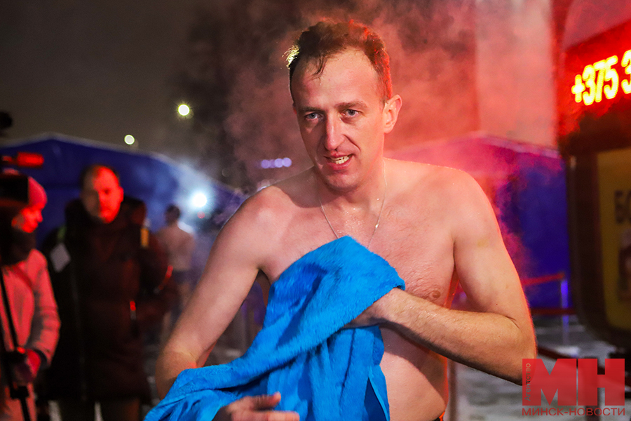 В этом году площадку у сектора А5 на стадионе «Динамо» впервые оборудовали для минчан, желающих искупаться. Здесь поместили не только саму купель, но и небольшую баньку, женские и мужские раздевалки – в общем, все доступно и комфортно. Как только локация начала свою работу, у воды сразу же выстроилась очередь из желающих совершить православный ритуал.