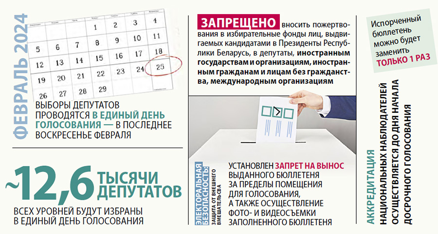 - Несколько слов следует сказать о едином дне голосования. Мы оценивали подобную практику в других странах, но ничего не копировали (в той же России). Подход был максимально рациональным. Анализ показал: благодаря такой стратегии мы сократим электоральный цикл. Проще говоря, еще вчера суверенная Беларусь из каждых прожитых четырех лет три проводила в состоянии выборов. Отныне выборы депутатов местных Советов и парламентские выборы объединены. После единого дня голосования в течение двух месяцев избираются делегаты ВНС, члены Совета Республики. И все. Депутаты всех уровней начинают работу в рамках отведенного законодательством времени. Объединяя сразу несколько кампаний, экономятся колоссальные ресурсы — и человеческие, и материальные.
