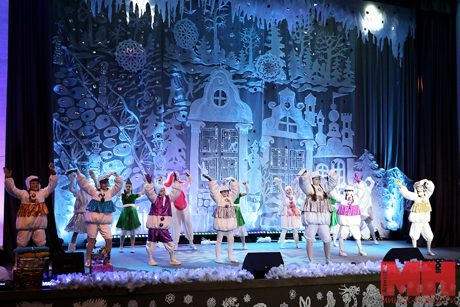 Перед началом праздника в фойе Национальной библиотеки ребята могли принять участие в мастер-классах, а также в разнообразных играх и конкурсах. Далее состоялось театрализованное представление «Приключения ёлочных игрушек и волшебные часы деда Мороза», которое подготовили воспитанники ГУО «Центр дополнительного образования детей и молодежи «АРТ». По окончании спектакля каждый получил новогодний подарок — сладости и мягкую игрушку, купленные предприятиями, организациями и предпринимателями района.