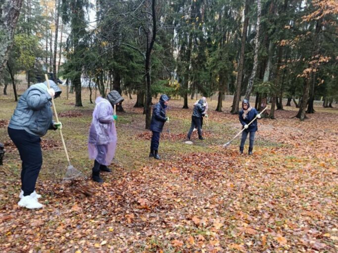 Как пояснила Н. Кулакевич, команда, работавшая на ул. К. Цеткин, 49, занималась уборкой листвы и наведением порядка на территории предприятия. В районе поймы реки Мышки (в границах пр. Дзержинского и ул. Железнодорожной — Семашко — Уманской) работники занимались не только уборкой листвы, но и посадкой кустарников. И третья бригада трудилась в поселке Стайки, приводя в порядок накануне зимнего сезона территорию воспитательно-оздоровительного лагеря «Лесной огонёк», находящегося на балансе объединения.