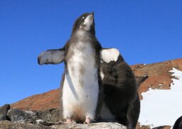 — Мы дружим с пингвинами и оберегаем их, но не подкармливаем, — говорит А. Гайдашов. — Это нарушило бы природный баланс. Сами же птицы нашего ничего не трогают.