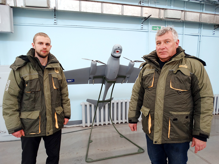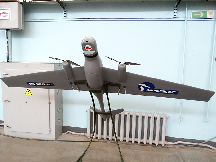 — Вот аппарат малого класса «Бусел», — показывает И. Аниськов. — Уже более 8 лет эти беспилотники успешно используются в работе МЧС Беларуси и зарекомендовали себя с самой лучшей стороны. Комплексы весом от 6 до 14 кг запускаются с руки или небольшой катапульты, приземляются на парашюте, имеют широкий арсенал сменных целевых оптических систем мониторинга и наблюдения. Они надежны и долговечны, обладают уникальными характеристиками, способны выполнять полеты в сложных метеоусловиях и в горной местности, что позволило расширить географию продаж.