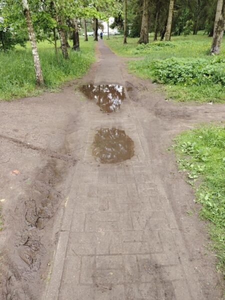 Большие лужи на тротуарах мешают и жителям Московского района: проблемы обозначили жильцы домов на ул. Грушевской, 15, ул. Лермонтова, 18а и ул. Попова, 24.