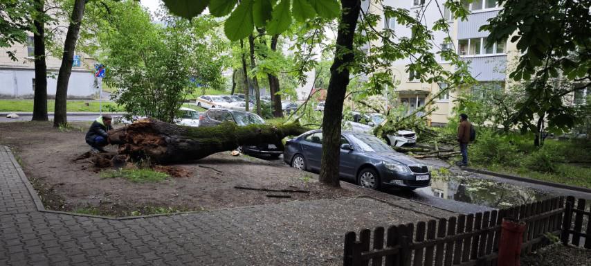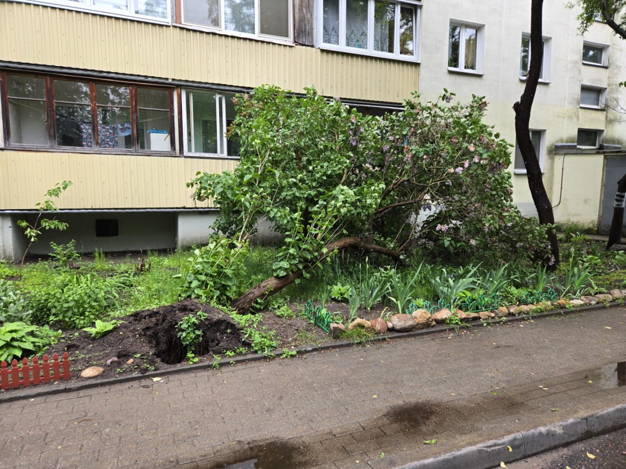 Сразу отметим, что обильная влага сыграла злую шутку с зелеными насаждениями по ряду адресов. В частности, испытания дождем не выдержало дерево у дома № 2/2 на ул. Цнянской. Стволы сирени упали на пр. Независимости, 151/1 и на ул. Лещинского, 47.