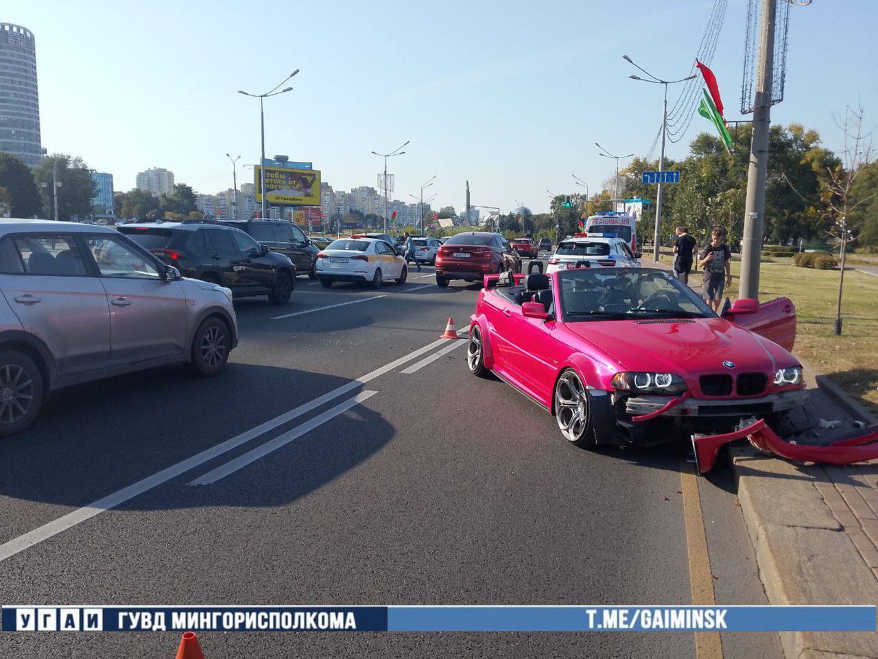 В аварии на пр. Победителей получили повреждения три автомобиля, сообщает корреспондент агентства «Минск-Новости» со ссылкой на ГАИ.