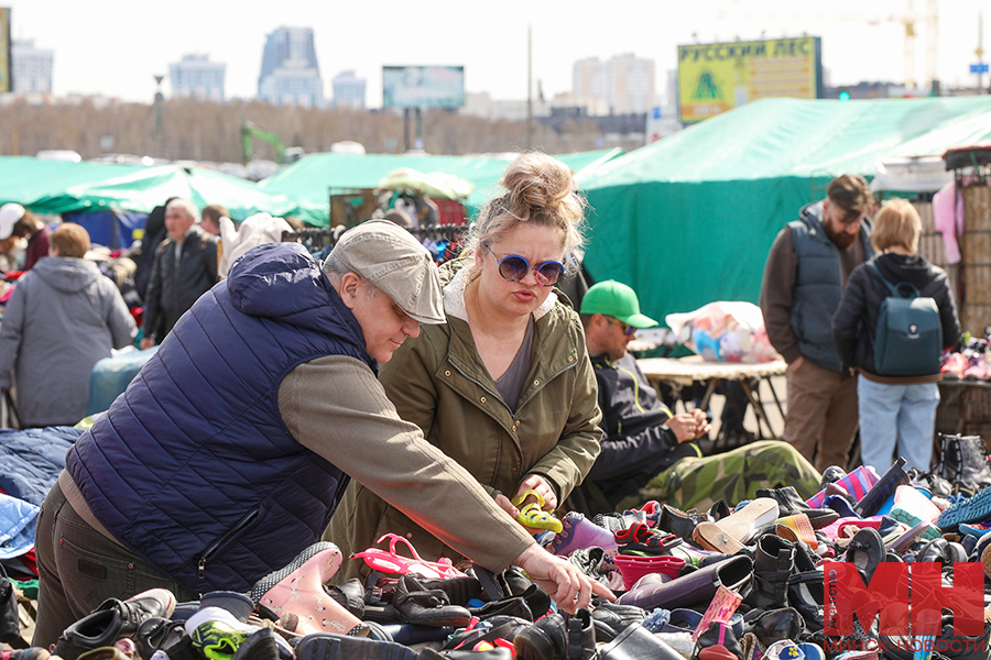 Женщина неплохо закупилась: демонстрирует мужские шорты за 10 рублей (говорит: самое то для частного дома), почти новую майку Tommy Hilfiger всего за 2, дождевик для внучки за 12 и женские леггинсы за 4. Следующий пункт в списке покупок — обувь для себя и мужа. Лучшими точками с качественными товарами она радушно делится с нами.
