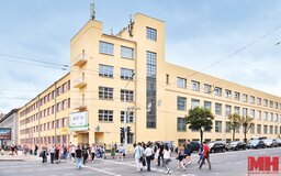 Следующая остановка — у Дома печати, построенного в 1935-м. В нем перед войной работало крупнейшее полиграфическое предприятие Беларуси — типография имени Сталина, а также размещались фабрично-заводское училище типографии, Белорусское государственное издательство и другие организации.