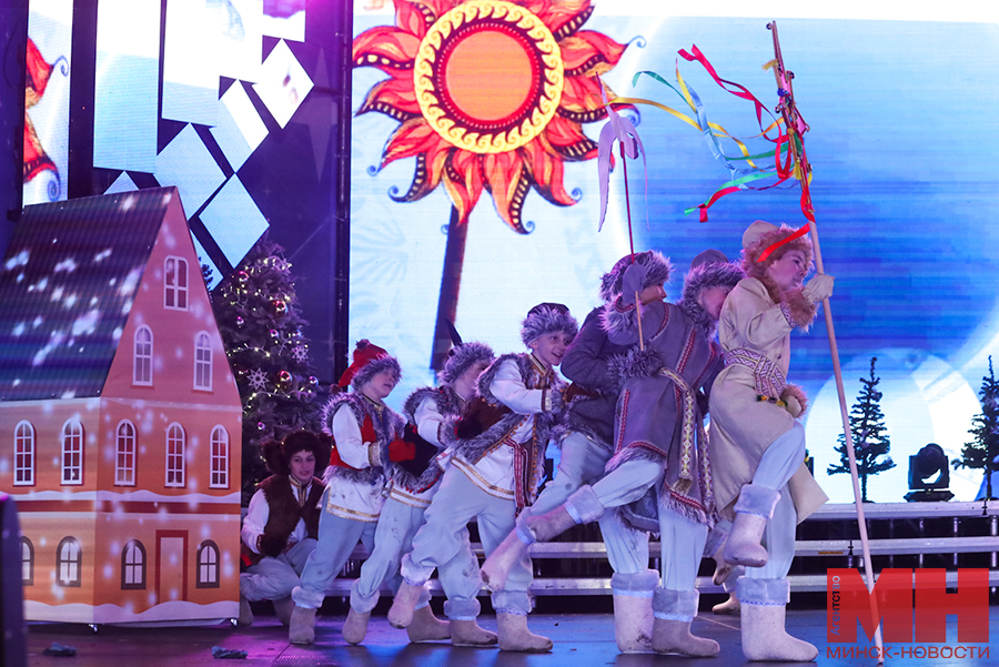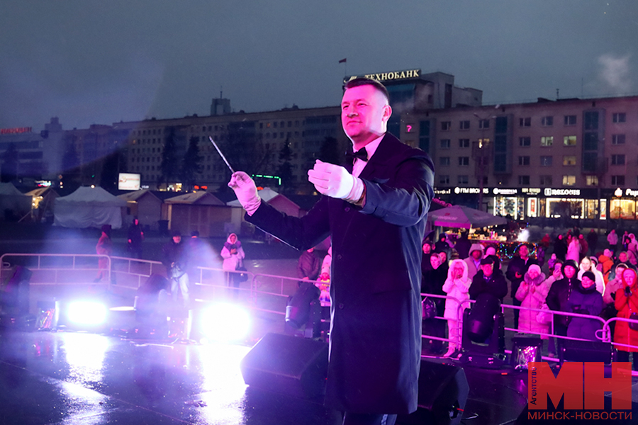 В 17:00 стартовала новогодняя программа для жителей города. Для зрителей выступили духовой оркестр и фольклорный ансамбль, а также провели флешмоб с участием Деда Мороза и Снегурочки. Завершится мероприятие ярким салютом.