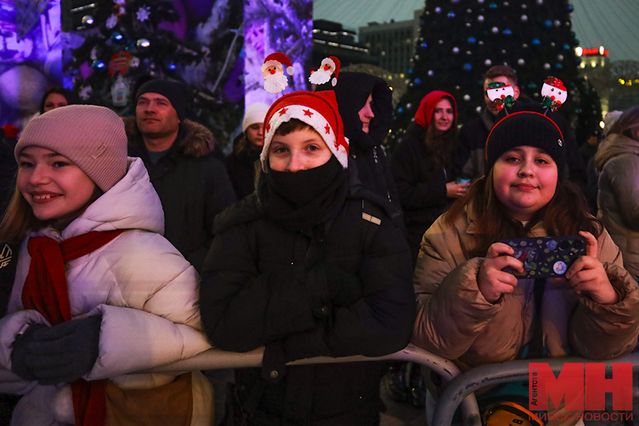 Елку Фрунзенского представили на площадке у Дворца спорта 27 декабря, передает корреспондент агентства «Минск-Новости».