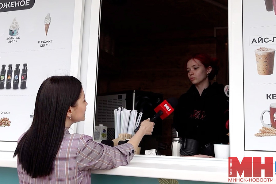— Второй сезон работает моя точка. Так сложилось, что через аукцион досталось это место. Люди выбирают мороженое, водичку, мяско и кукурузу, — признается один из продавцов на пятом пляже Минского моря.