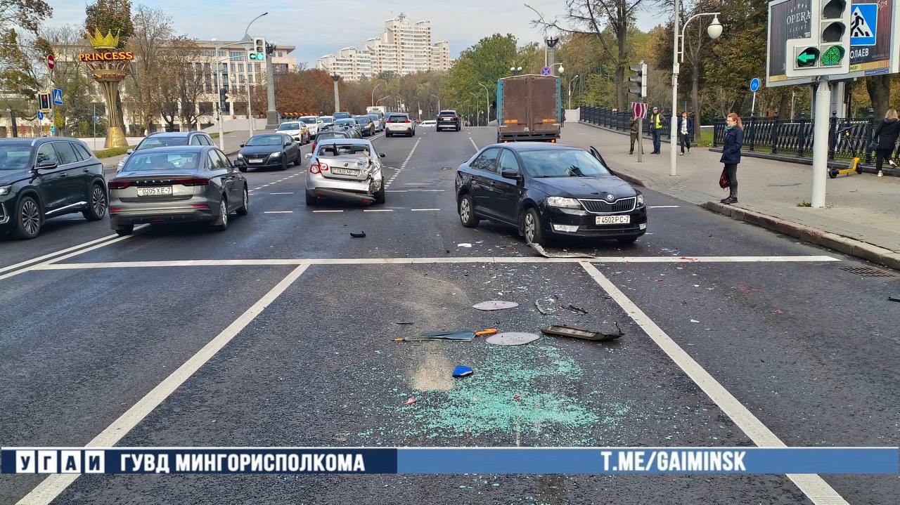 Возле парка им. Я. Купалы утром 7 октября произошло ДТП с участием трех автомобилей, сообщает корреспондент агентства «Минск-Новости» со ссылкой на Telegram-канал УГАИ ГУВД Мингорисполкома.