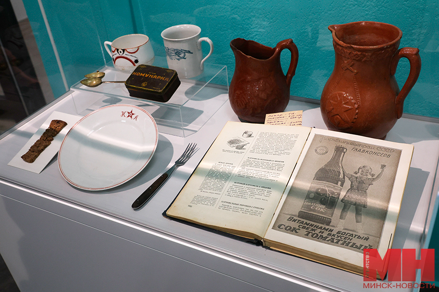 Эволюция системы питания в ХХ веке демонстрируется и через посуду для хранения, обработки, приготовления и подачи еды, фотографии, предметы быта, кухонную технику и даже произведения живописи. Значимая часть экспонатов — разнообразная посуда, в том числе немецкая трофейная. В витрине с экспонатами раннесоветского периода обращают на себя внимание образцы агитационного фарфора. Например, чашка из сервиза «Шестеренки», которую сотрудники музея отыскали в Северном переулке Минска, районе сохранившейся деревянной застройки. Рядом — кружка «Всенарпита СССР» с надписью: «Общественное питание под огонь рабочей самокритики».