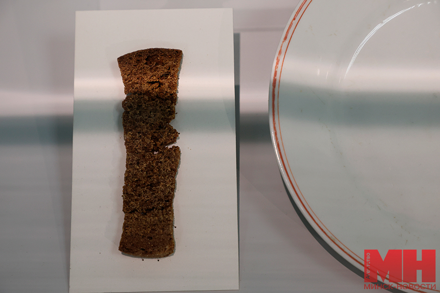 Один из самых примечательных экспонатов коллекции — кусочек хлеба начала ХХ века. Сохранил его минчанин Иосиф Голубев — революционер и один из первых Героев труда. Всю жизнь он вел дневник, в котором фиксировал события жизни и множество бытовых мелочей, — как современный блогер. В 1918 году он отправился в Москву на съезд рабочих-железнодорожников и получил там паек, о чем оставил подробную запись. Обеденный кусочек хлеба он не ел, а завернул в салфетку и привез в Минск, где всю жизнь хранил его в банке из-под халвы. Много лет спустя внук Иосифа Петровича передал ценный «сувенир» в Музей истории города Минска.