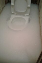 Из минусов, которые не упоминаются, отметим засоры канализации. Квартиры на первых этажах чуть больше подвержены риску быть затопленными стоками, если засор образовался в стояке ниже уровня пола в санузле или дальше в горизонтальном трубопроводе (лежаке). Мы описывали такой случай в 2019 г. Пострадавший владелец еще легко отделался: из недр канализационной трубы через унитаз наружу вырвалось не самое худшее, а всего лишь вода из стиральной машины, которой пользовались в одной из вышерасположенных квартир; пена заполнила почти половину помещения туалета.
