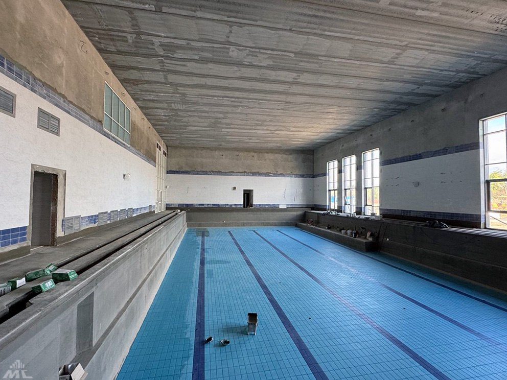 На данный момент наибольшая готовность отмечена у фасадов здания, кровли и уличных спортивных площадок. Внутри в тестовом режиме уже функционируют лифты, параллельно продолжаются отделочные работы: строители укладывают специальное покрытие в залах, монтируют плитку в бассейнах и ведут наладку сложного оборудования. В сентябре на объект начнут поставлять и устанавливать мебель.