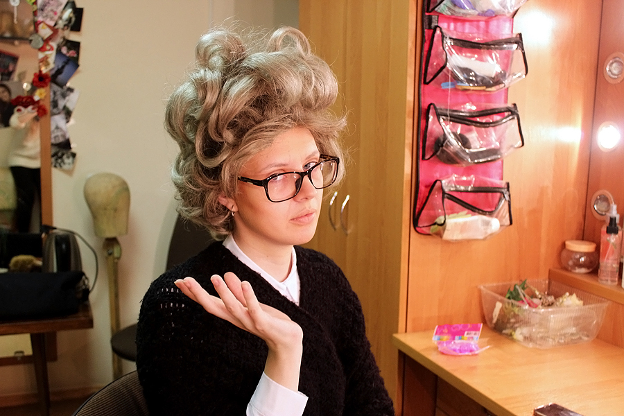 Последний штрих — парик. Девушка помогает мне надеть копну седых волос. Нацепив на нос очки и укутавшись в свой вязаный кардиган, исподлобья смотрюсь в зеркало. Узнать в этом уставшем лице саму себя сложновато. А ведь преображение заняло не больше 30 минут. Хотя по внешнему виду кажется, что прошло не меньше 30 лет.
