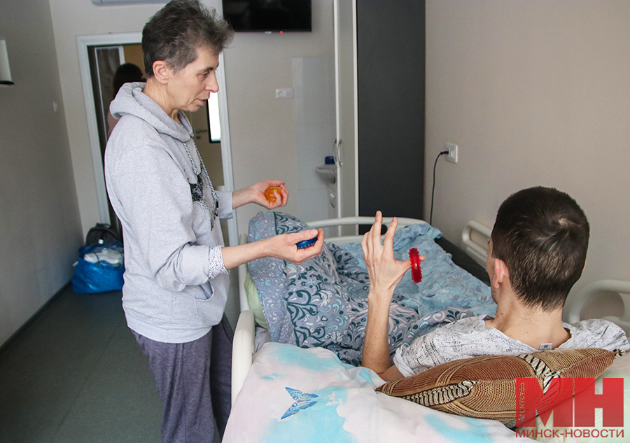 — Для одного успех — это овладение навыками самообслуживания, для другого — ожившие эмоции и речь. У нас регулярно проходит лечение Максим из Слонима. Он наша гордость. Поступил в центр в вегетативном состоянии. Тогда мы только набирали таких пациентов. Парень пережил шестнадцать операций, три с половиной месяца находился в искусственной коме. Более двух лет лежал с трубкой в горле. Теперь же Максим произносит слова, понимает шутки и сам шутит. Помогает отцу, когда тот его одевает. Для родных это уже большое облегчение.