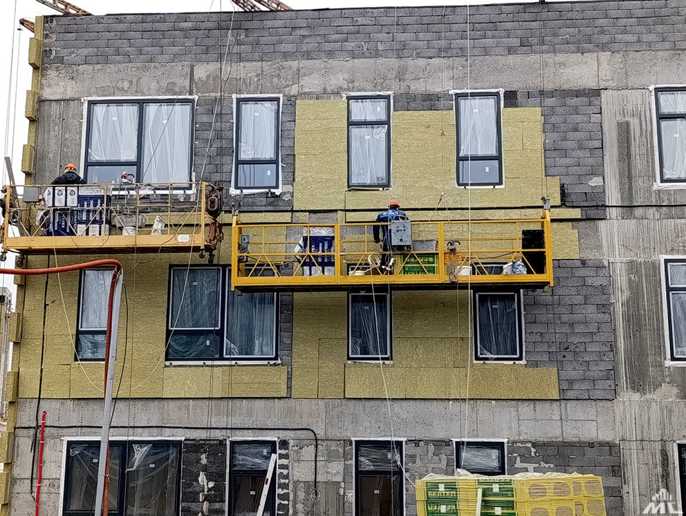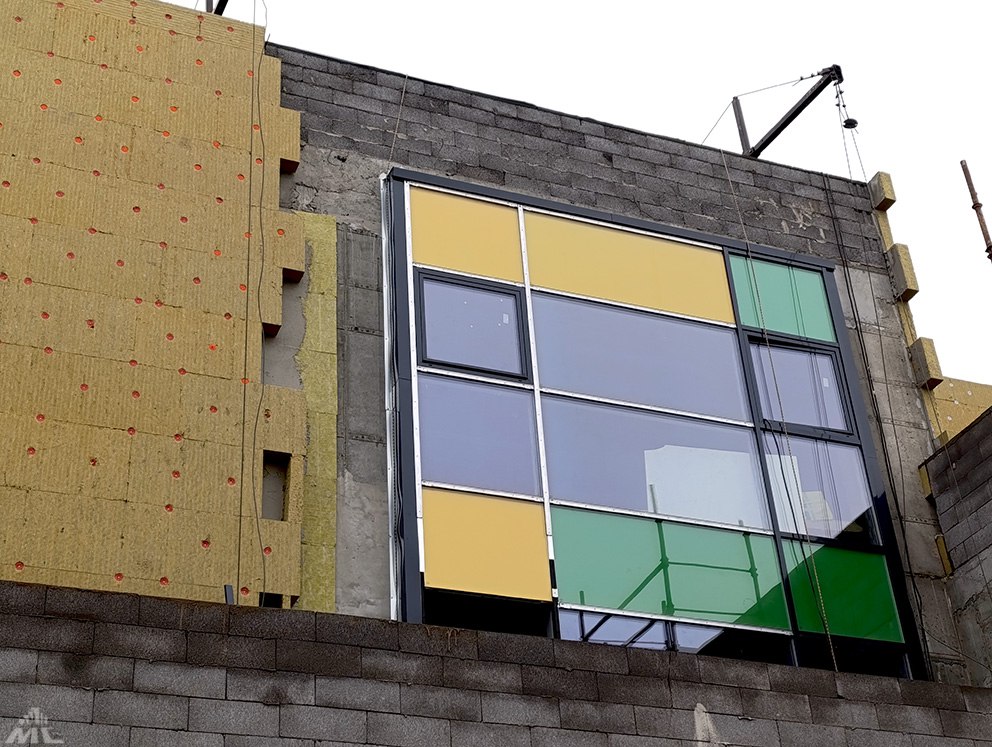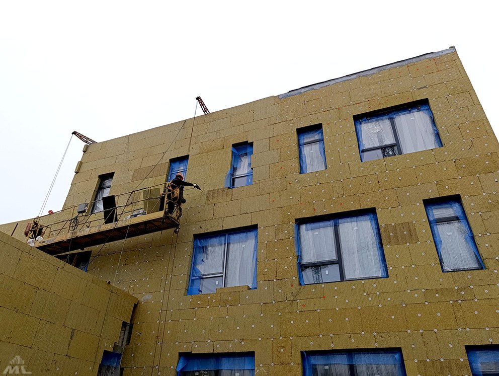 К середине месяца утепление планируют завершить, после чего приступят к отделке декоративными панелями. Оконные блоки и витражи уже установлены.