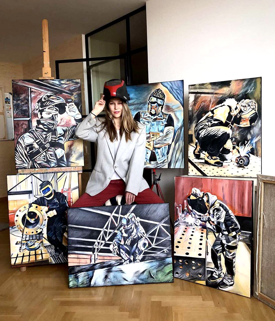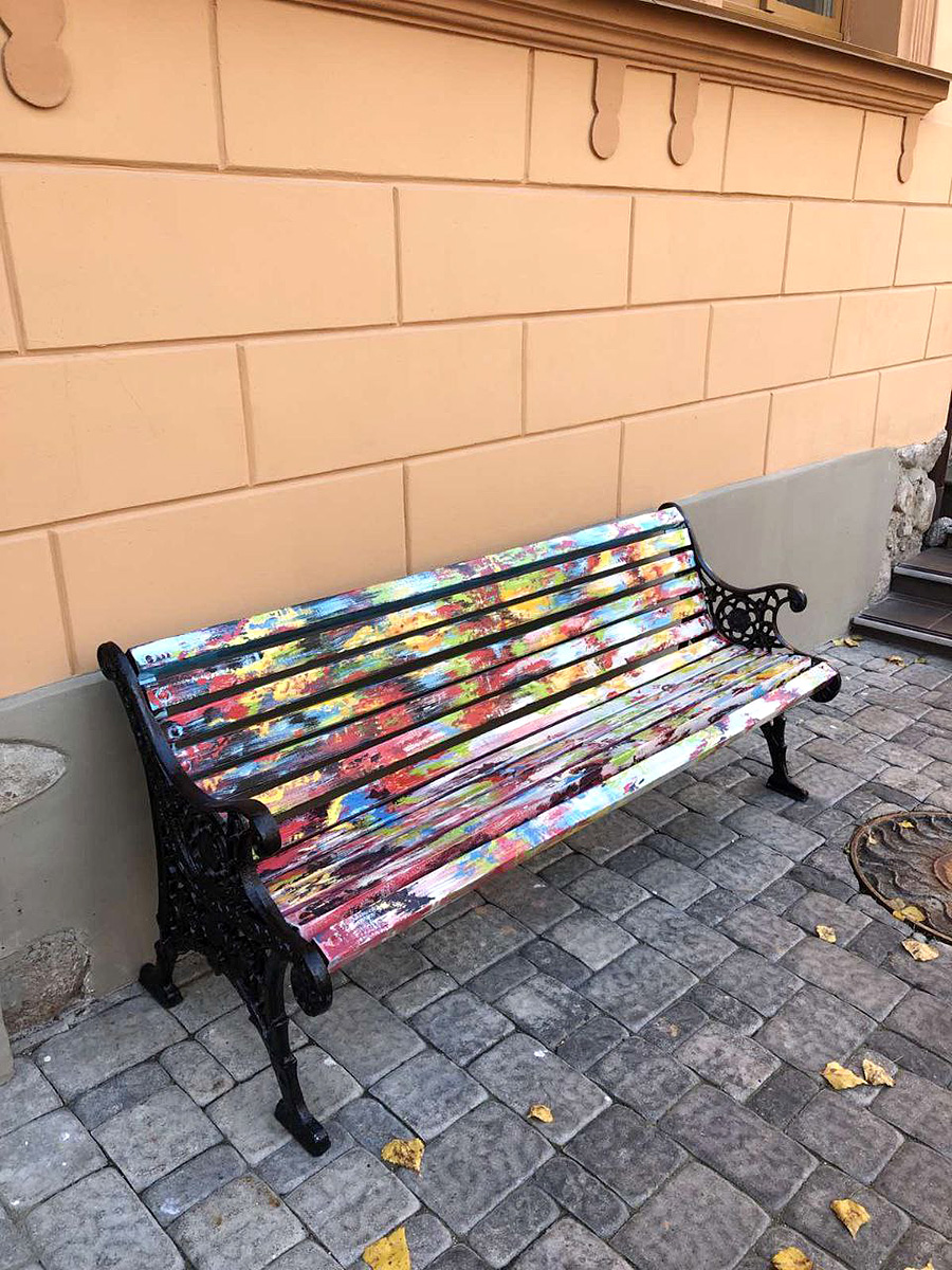 Еще один интересный кейс из практики Ольги — это картина, написанная для команды сварщиков, работающих за рубежом. Сейчас полотно украшает офис ребят. А еще собеседница как-то расписывала лавочку, установленную у столичного отеля.