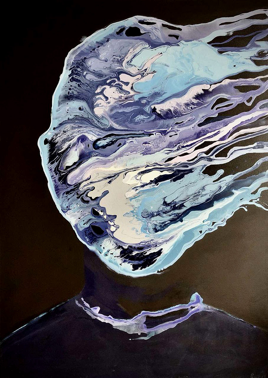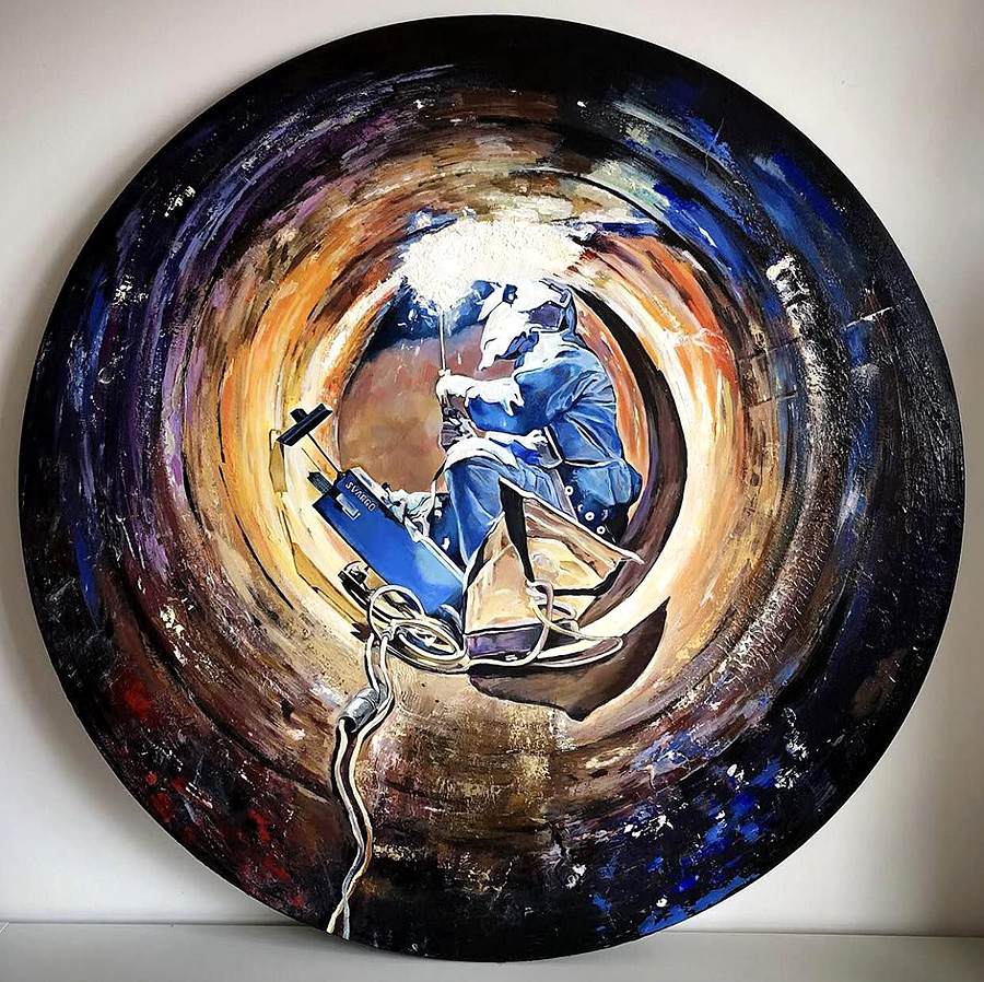 — С одним из самых интересных запросов ко мне обратилась девушка, которая проживает в Москве и занимается продвижением актеров. Она хотела полотно, которое рассказывало бы о ней, о ее характере, темпераменте. Холст мы брали круглый, диаметром 164 см (это рост заказчицы). На нем изображена планета, которую разрывает девушка (символ силы, мощи, столкновения потоков энергии). Работа с этой задумкой стала крутым опытом. С одной стороны, эта история — про другого человека, я выступала исключительно в качестве реализатора. С другой, я все равно транслировала себя — через авторский стиль. И, более того, сама прожила этот проект в процессе его воплощения, — признается собеседница.
