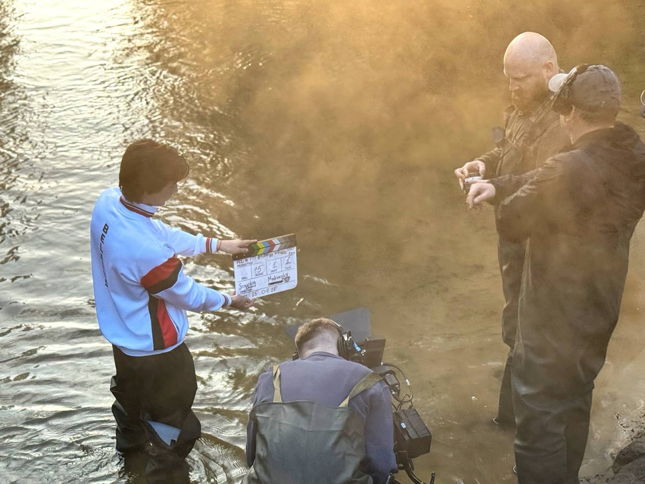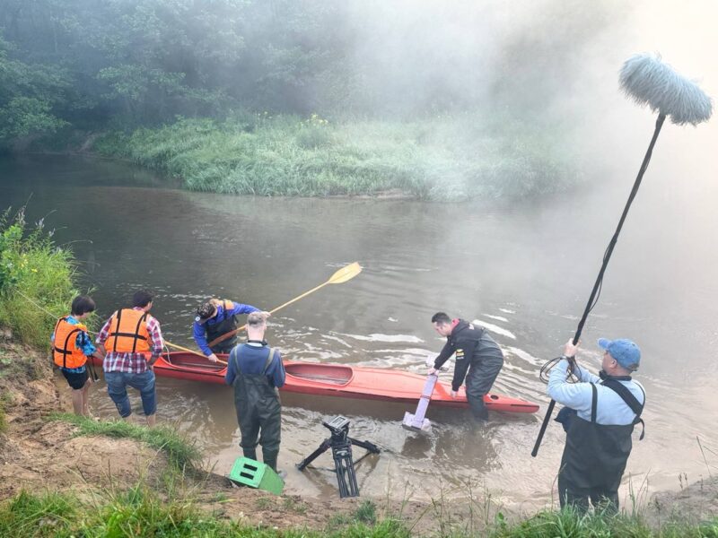 Первый съемочный день стартовал на реке Ислочь в Киевце на рассвете. Атмосфера действительно непередаваемая — туман стелется над водой, солнце только встает над горизонтом, а на площадке кипит работа: десятки человек работают за кадром, выставляя оборудование, реквизит, работают над гримом, костюмами. Все рассчитано, вплоть до пары сантиметров. У берега в лодке самый юный участник съемочного процесса — мальчик Ваня Рукша, играющий главного героя в детстве, ведь сегодня снимают эпизод с воспоминаниями. Самый первый кадр — на воде.