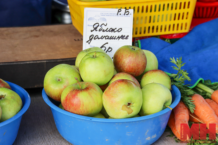 Яблок нового урожая на рыке много, а вот цены на них в очередной раз заставляют посетовать на позднюю весну и холодное лето. Самые мелкие и дешевые, второго сорта, можно взять по 3,50 рубля за килограмм. «Белорусское сладкое» продают по 5 рублей, «медовый хруст» и «чемпион» — по 6,90 рубля. На крупные и румяные ценник выше — до 10 рублей. В одной из точек выставлена красивая «дедовская антоновка» — и вовсе по 15 за кило!