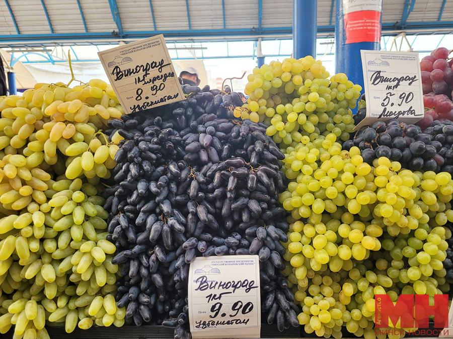 С рядов с овощами и зеленью переходим к ягодам и фруктам. Чернослив повсеместно продается по 4,90 рубля, а вот на виноград разбежка цен большая. Мелкие «кишмиш» и «кодрянка» есть и по 4,90 рубля, а сорта покрупнее, например «мерседес» и «дамские пальчики», будут уже по 6,90–9,90 рубля. Прайс на арбузы начинается с 1,5 рубля, на дыни — от 2,5 рубля.