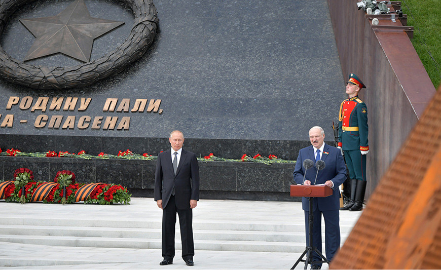 Белорусский лидер прибыл на место на вертолете. Во время торжественной церемонии Лукашенко и Путин пообщались с ветеранами Великой Отечественной войны и возложили цветы к подножию мемориала. Память павших героев все присутствующие почтили минутой молчания.