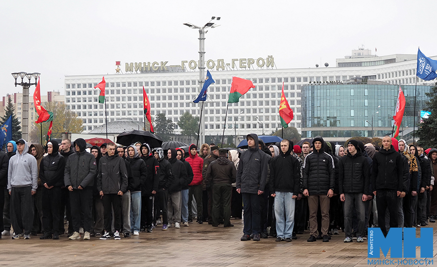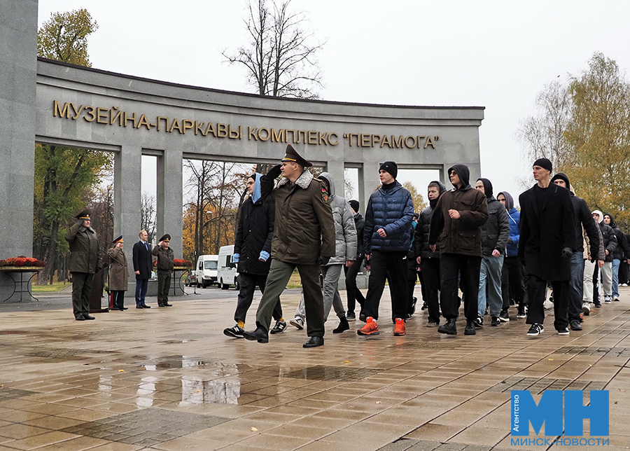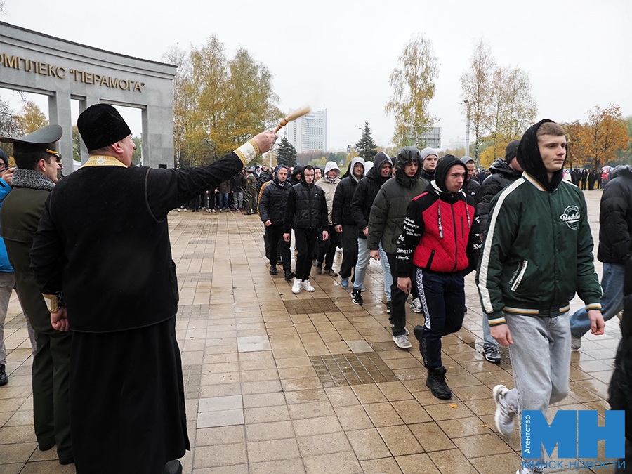 Отправка призывников в ряды Вооруженных Сил, других войск и воинских формирований началась 23 октября в столице, передает корреспондент агентства «Минск-Новости». По традиции у центрального входа в парк Победы состоялся торжественный митинг.