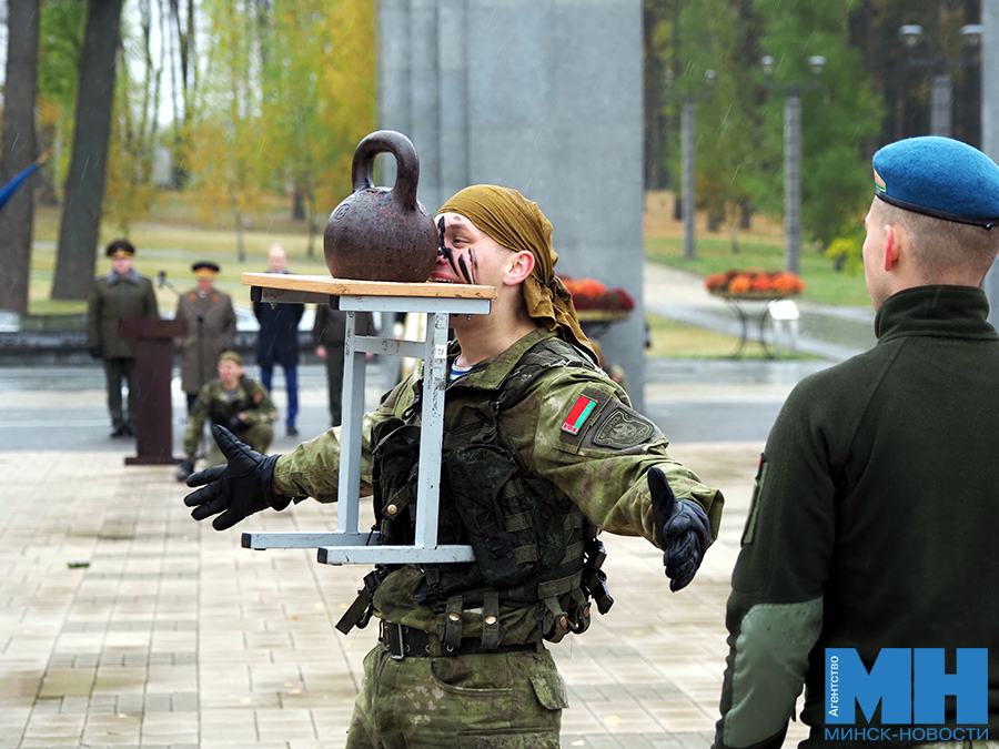 — Мужская зрелость определяется многими факторами, одним из которых является служба в армии, — обратился к присутствующим исполняющий обязанности военного комиссара города Минска Евгений Брацков. — Без сомнения, армия закаляет волю, шлифует характер, приучает к самостоятельности, ответственности за свои дела и поступки. Весьма символично, что это мероприятие мы проводим в год 80-летия Великой Победы. Уверен, что наши сыновья с честью сдадут экзамен на мужскую зрелость, вернутся домой возмужавшими, настоящими защитниками своей семьи, своего Отечества.
