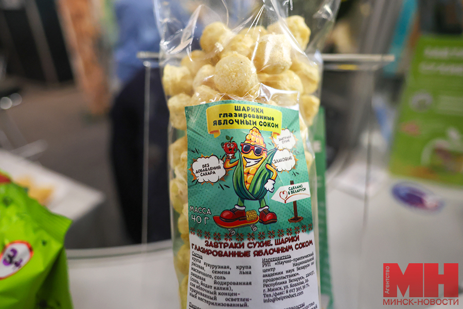 Полезную новинку для детей — сухие завтраки без сахара — выставляет на агрофоруме НПЦ НАН Беларуси по продовольствию. Они представляют из себя хрустящие мультизерновые шарики с семенами льна, глазированные яблочным соком. Другие полезные разработки смогут по достоинству оценить и взрослые: нектар из голубики, томатный сок прямого отжима не только вкусны, но и полезны.