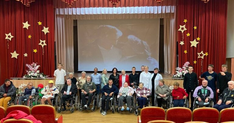 Поздравительная акция началась с концерта, где под аккомпанемент гостей ветераны спели любимые песни. Многие из постояльцев передвигаются на инвалидных колясках, поэтому молодежь организовала для них прогулку по территории дома-интерната.