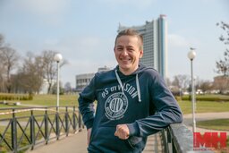 А. Вашанов уверенно идет к мостику через Свислочь, ведущему к скверу «Старостинская слобода» (около гостиницы «Беларусь»). По этому историческому топониму названа и сама мезолитическая стоянка.