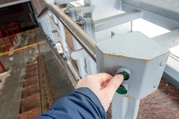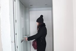 Двигаются они медленно, но главное — работают. В кабине платформы помимо кнопок управления подъемным механизмом есть кнопка связи с диспетчером. Нажав на нее, через несколько секунд услышали женский голос: «Что у вас случилось?» Словом, все оборудование действует.