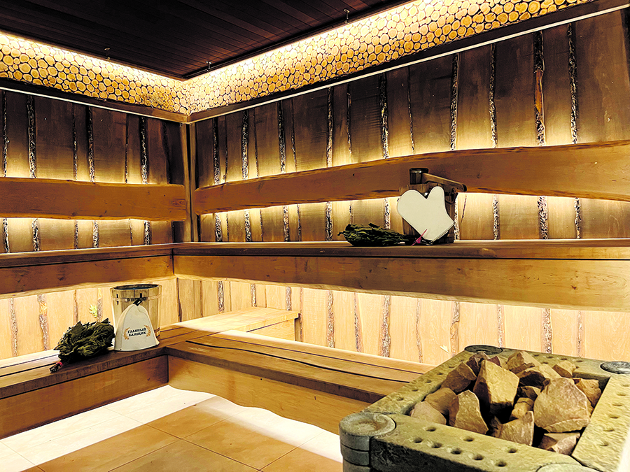 — 12 разных саун и бань, 4 джакузи, одно из которых под открытым небом, 9 бассейнов: два детских различной глубины, два взрослых — малый и большой длиной 25 м, 4 бассейна под открытым небом и мини-бассейн в приват-сауне;