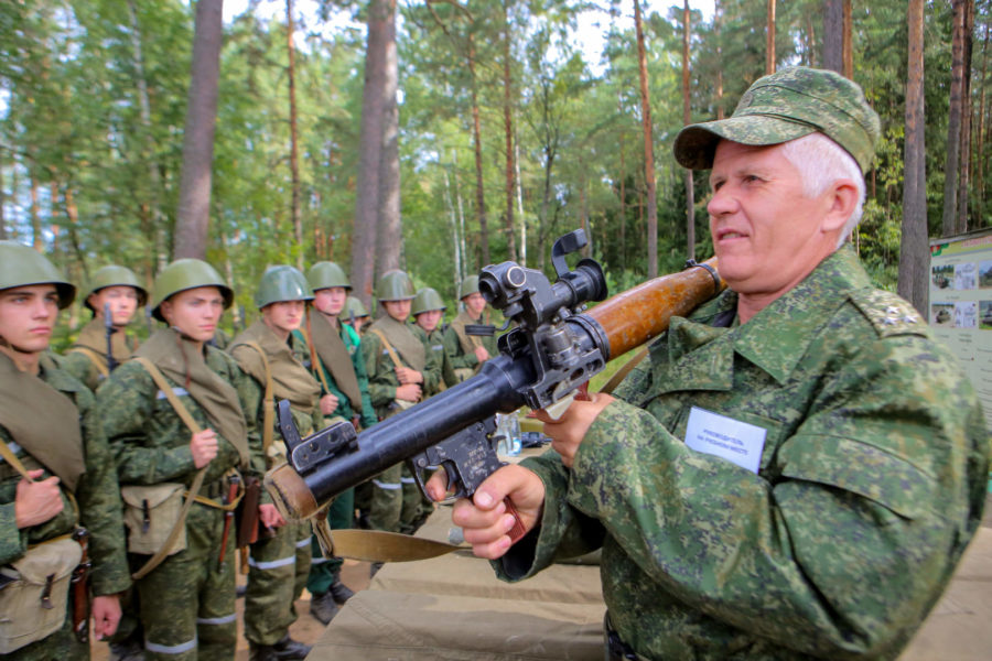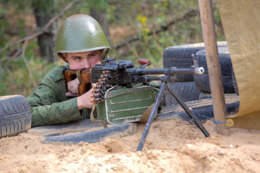 Учебных мест было несколько. На одном будущие офицеры тренировались надевать общевойсковой защитный комплект, на втором — передвигаться на поле боя в обороне и наступлении, на третьем — противостоять бронеобъектам противника. Одним словом, учились воевать. Причем в условиях, приближенных к боевым, но с соблюдением необходимых мер безопасности. Ведь и автоматы, и пулеметы с патронами (хоть и холостыми) настоящие. Что уж говорить о танках!