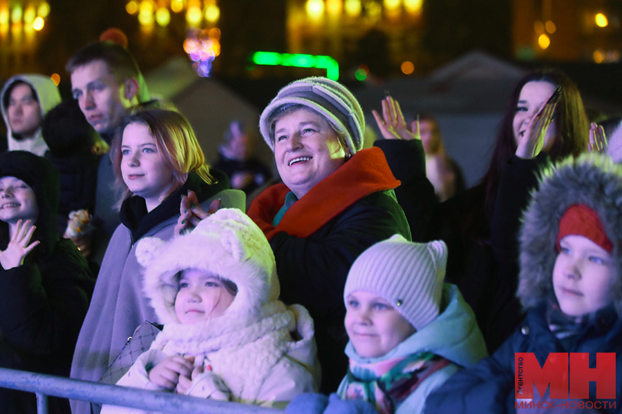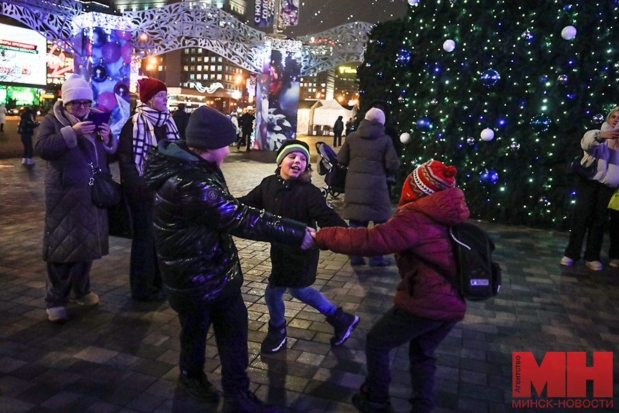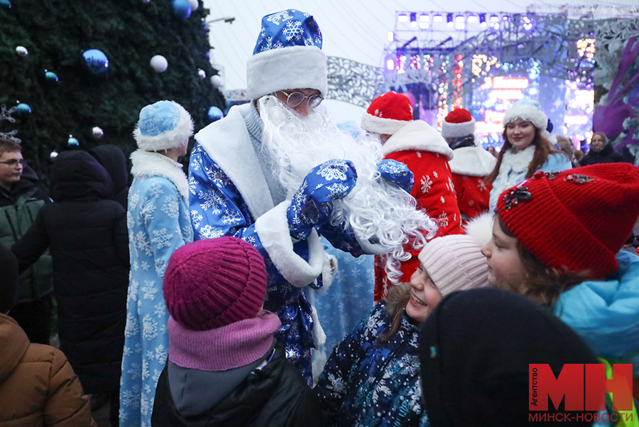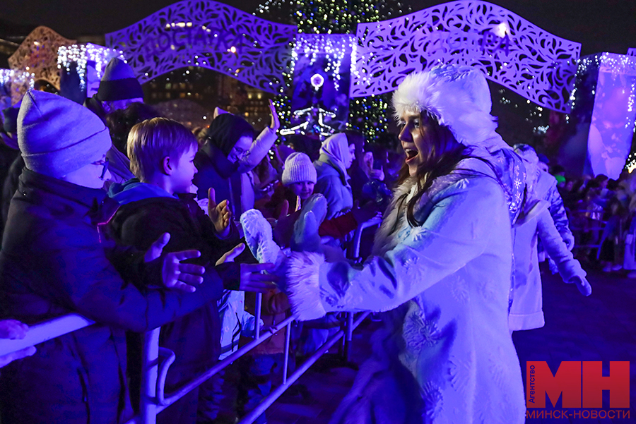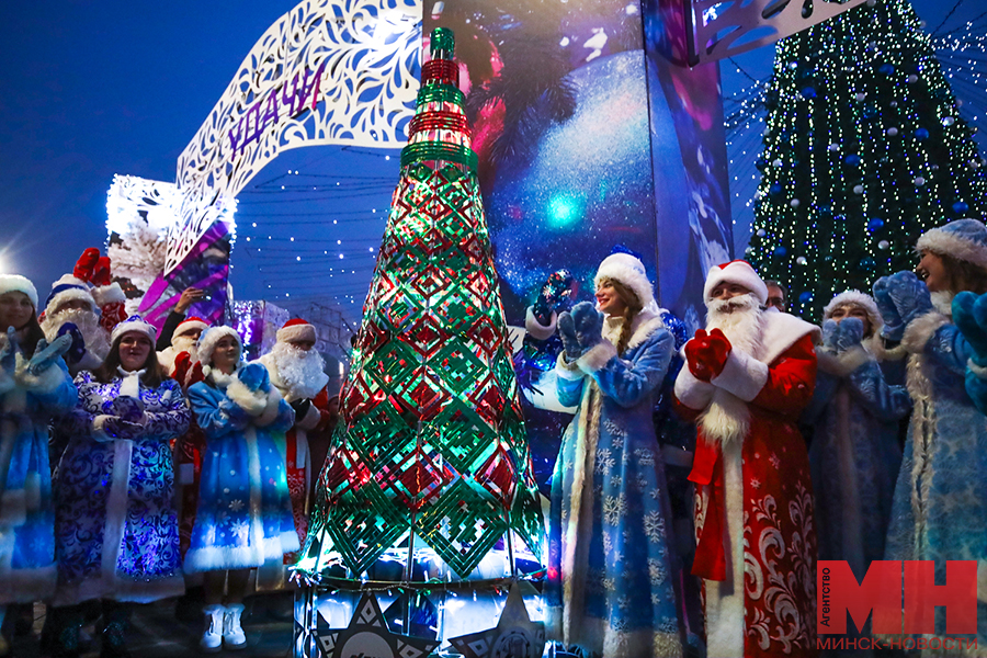 Волшебную атмосферу задают праздничные огни в цветах белорусского флага. Однако они появились не сразу. Дедушка Мороз с внучкой Снегурочкой отказывался включать их после традиционного возгласа «Раз…два…три. Елочка, гори!». Убедить его удалось только зажигательными танцами и задорными улыбками.