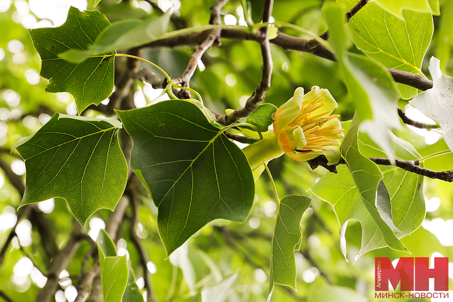 Сейчас в ботаническом саду цветет и еще один интересный зеленый «экспонат» — лириодендрон, или тюльпанное дерево. Растение выделяется листьями необычной формы и похожими на тюльпаны цветами желто-оранжевой расцветки. Этот древний вид, заставший еще динозавров, по легендам имеет волшебные свойства: загаданное под тюльпанным деревом желание непременно исполнится. Так что вы знаете, в какой точке завершить свою прогулку по парку.