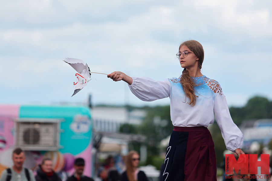 Отдельным пунктом программы станет «Музыкальный киноводевиль», который представят вечером Белорусский государственный академический театр юного зрителя совместно с проектом «Роднае моднае». В ожидании необычного симбиоза спектакля и дефиле гости с удовольствием прохаживаются по торговым рядам, покупают сувениры, созданные ремесленниками прямо на площадке. Куклы-мотанки пользуются особым спросом.