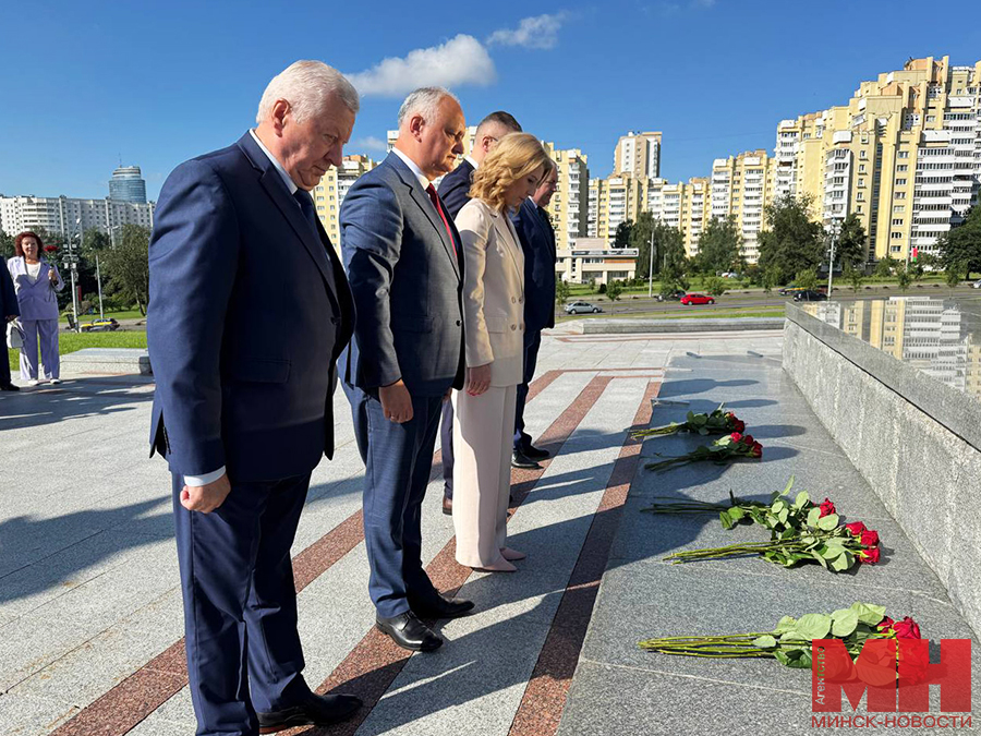 Молдавская делегация совместно с белорусскими коллегами также возложили цветы к стеле «Минск — город-герой».