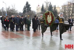 Высокого гостя у обелиска приветствовал председатель Минского городского исполнительного комитета Анатолий Сивак.