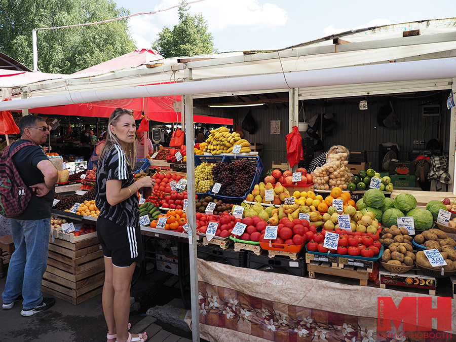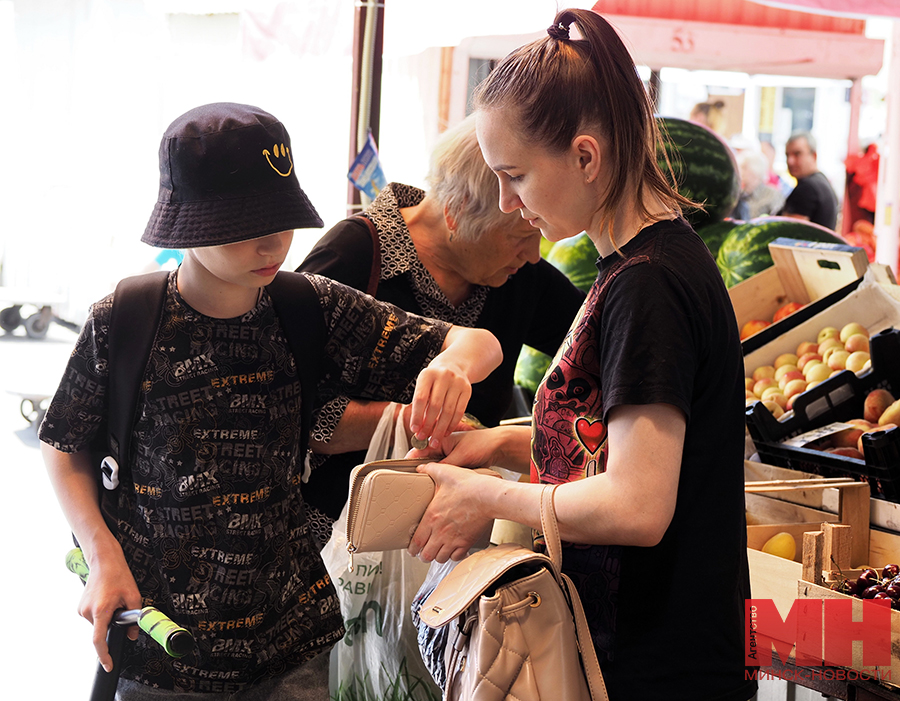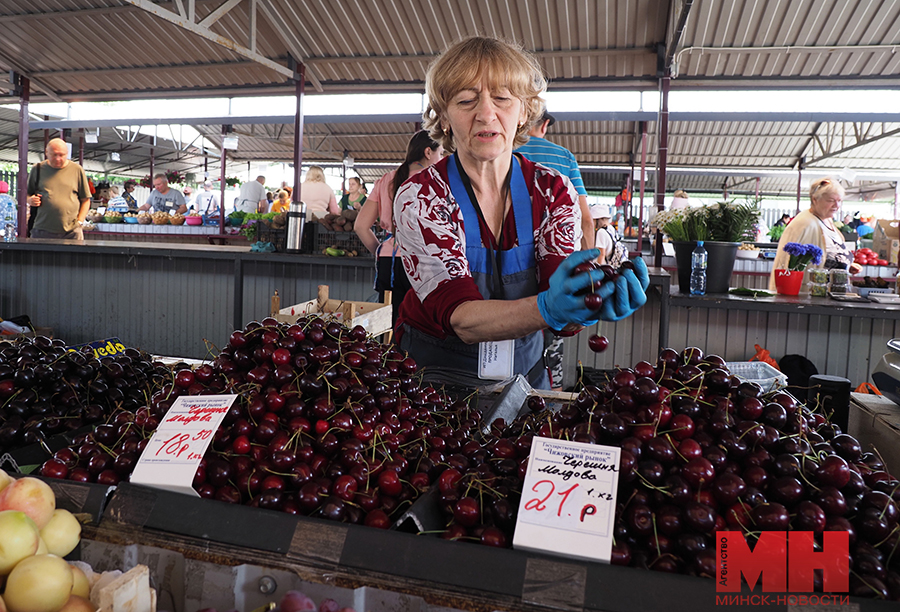 Цены, к слову, также радуют глаз и кошелек. Кило колючих огурцов — 3,5 рубля, томаты — от 4,5 рубля, молодой белорусский картофель — по 1,5–2 рубля, а за мелкую просят и вовсе 80 копеек. Пресловутые лисички — по 8 рублей за литр. Отечественную голубику отвешивают по 25 рублей, симпатичную клубнику — по 12. Прайс на черешню — 15–18 рублей, причем ящик недорогой белорусской ягоды разошелся в считанные минуты буквально у нас на глазах — не успели даже попробовать. Да, изысков в виде тропических фруктов и «золотых» ягод тут не найдешь. Зато свежих, вкусных, а зачастую и консервированных овощей и фруктов — предостаточно.