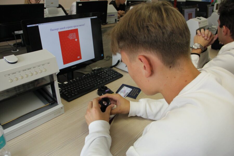 Организовали посетителям и практическое занятие: провести своеобразный пограничный контроль и проверку документов. Студенты получили уникальную возможность не только услышать теорию, но и сами смогли принять участие в выявлении поддельных документов, используя технические средства пограничного контроля.