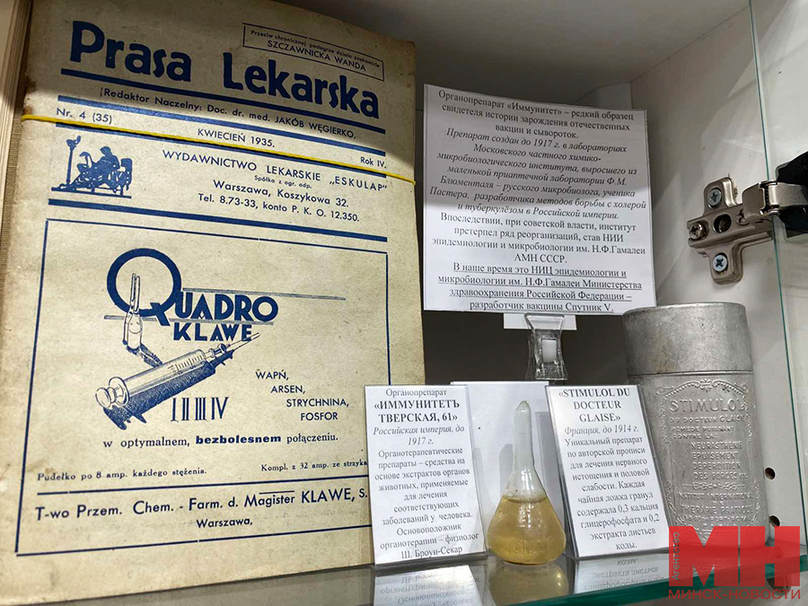 — Конечно же, организация экспозиции стала возможной благодаря директору «БелЛекоЦентра» Лицкевичу Алексею Леонидовичу. Выставка была открыта 7 мая 2023 года. На данный момент на ней представлено около 60 наиболее интересных, на мой взгляд, экспонатов, — считает И. Гринь.