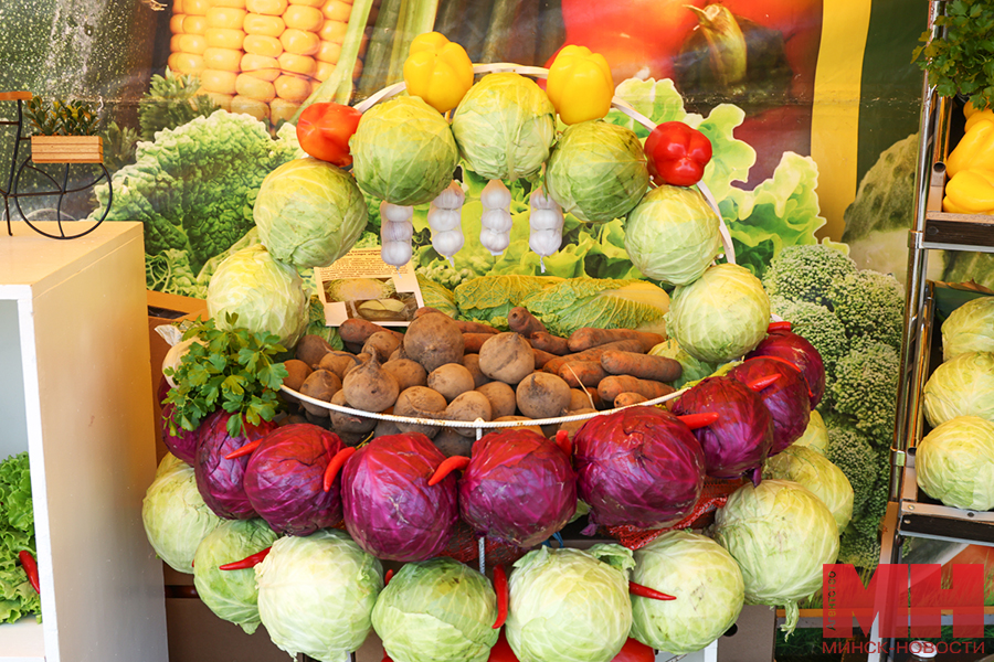 Столичный «ДорОрс» демонстрирует баклажаны, зелень и клубнику, а Минская овощная фабрика помимо основной продукции предлагает травяные чаи и мед.