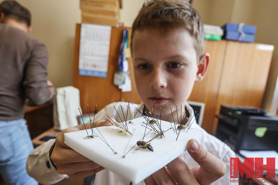 Научный сотрудник лаборатории наземных беспозвоночных животных Ольга Найман показала детям научные коллекции насекомых. Оказывается, это самая многочисленная группа животных в Беларуси. Она насчитывает около 12 тыс. видов! И хотя на столе были выложены всего несколько коробок из этномологической коллекции НАН, она произвела на детей большое впечатление. Среди них — краснокнижный жук-олень, богомол и др. Рассматривая жуков-пауков и бабочек, ребята увлеченно отвечали на вопросы О. Найман. Например, чем отличаются насекомые от паукообразных, к какому классу отнести клещей или скорпионов? Дети прекрасно справились с заданиями.