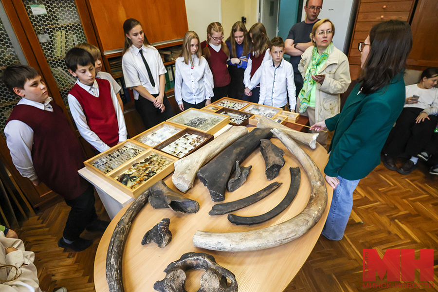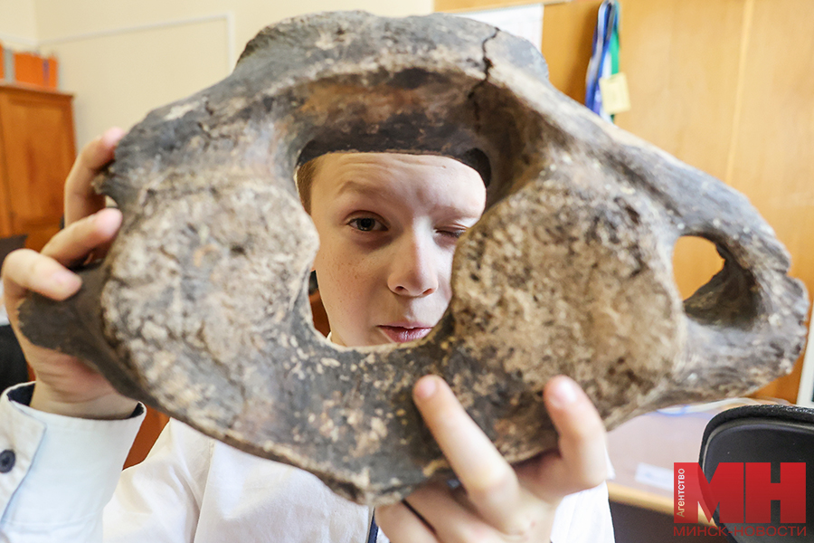 В заключение лекции ребята пофотографировали кости мамонта, найденные белорусскими учеными на территории нашей страны.