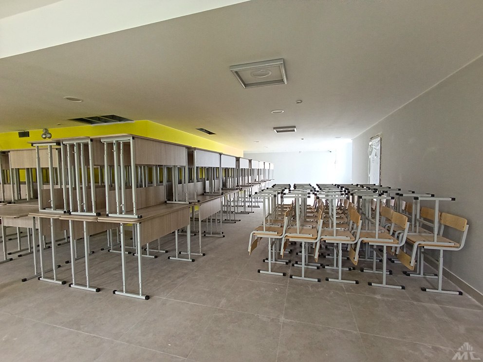 Школьные классы готовы: осталось лишь расставить мебель. Сейчас ее активно завозят и собирают на территории учреждения образования. Кроме того, уже уложено напольное покрытие и смонтированы баскетбольные щиты и штанги для волейбольных сеток в спортзале. В актовом зале специалисты приступают к укладке паркета.